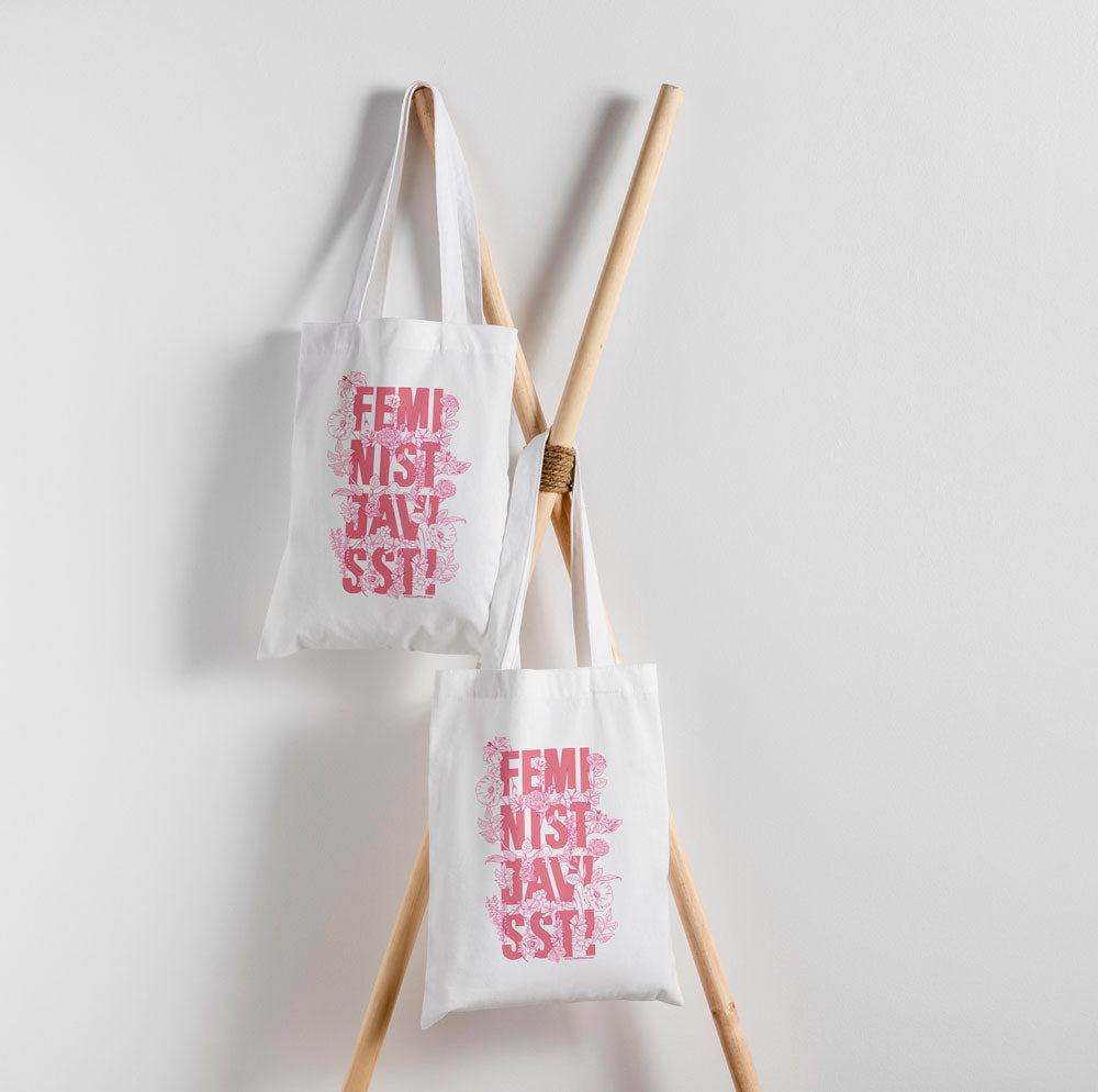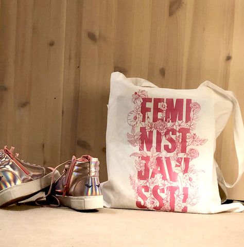 Tryckt i Sverige på återvunnen bomull och polyester. Mått: 41 x 38 cmLängd på handtag: 68 cmDesignad av Karin Rosenquist-Schager