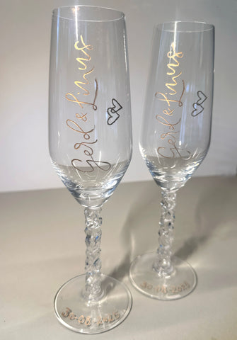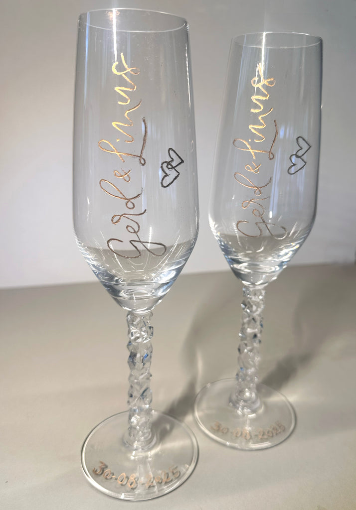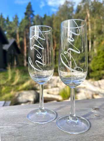 Ett graverat glas blir inte bara vackert, utan också minnesvärt. Perfekt till bröllop, födelsedagar, dop eller som en unik detalj i ditt eget hem. Du väljer själv texten – namn, datum, citat eller en personlig hälsning – och jag ser till att varje gravyr utförs för hand med stor precision och känsla.