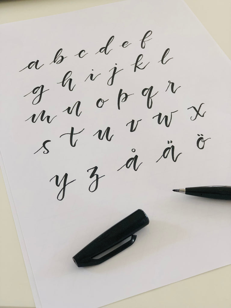Under denna workshop lär vi oss att skriva modern kalligrafi med en penselpenna. Vi kommer även att utforska andra stilar inom begreppet "lettering" och prata lite termer och olika tekniker. Detta är en kurs för nybörjare och tanken är att ni ska lära er "the basics" för att kunna fortsätta hemma med denna fantastiska hobby.