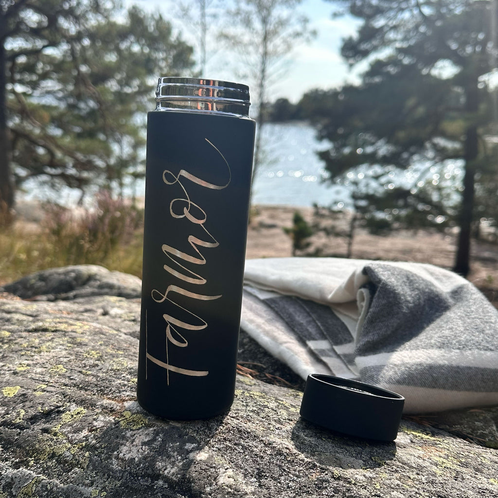 *Sista dagen att beställa för leverans innan jul är 15 december!* Handskriven personlig termosmugg i rostfritt stål. Svart. Håller 450ml. *Inga returer på personliga varor*