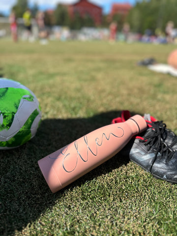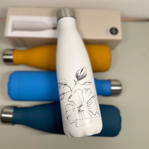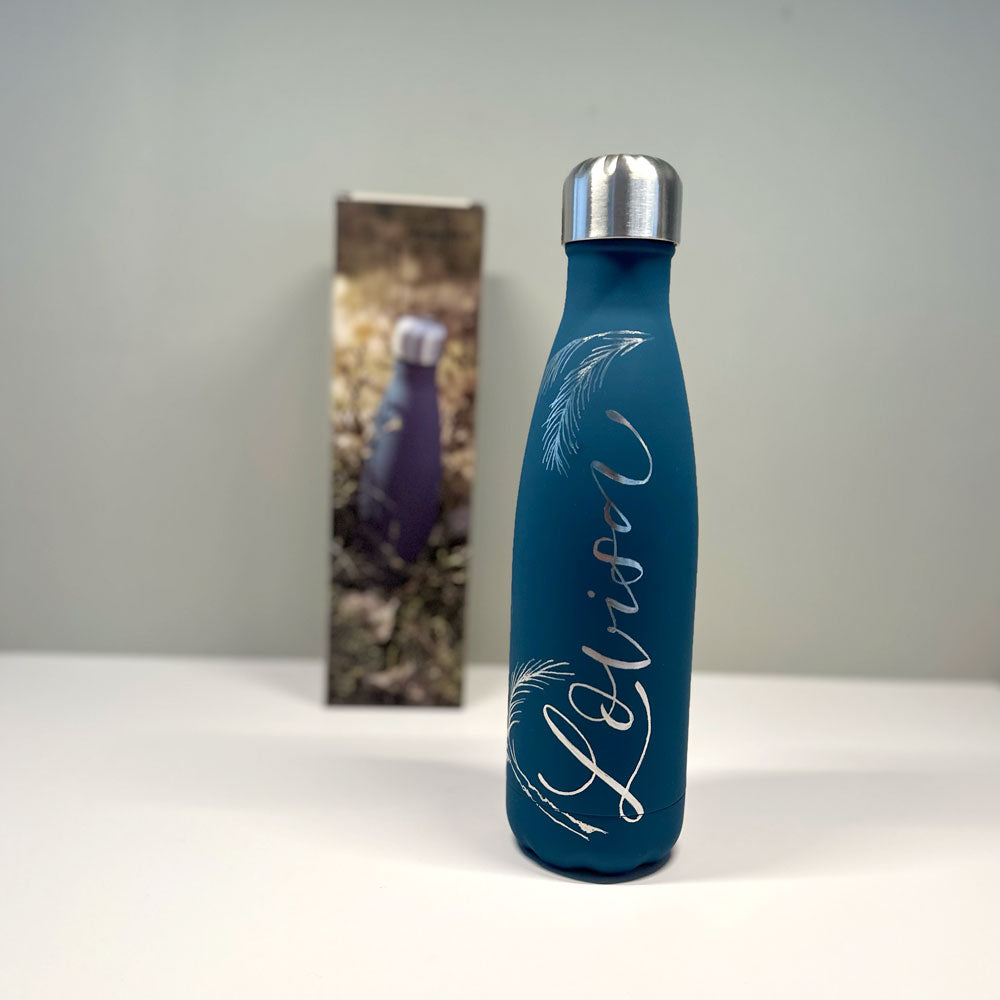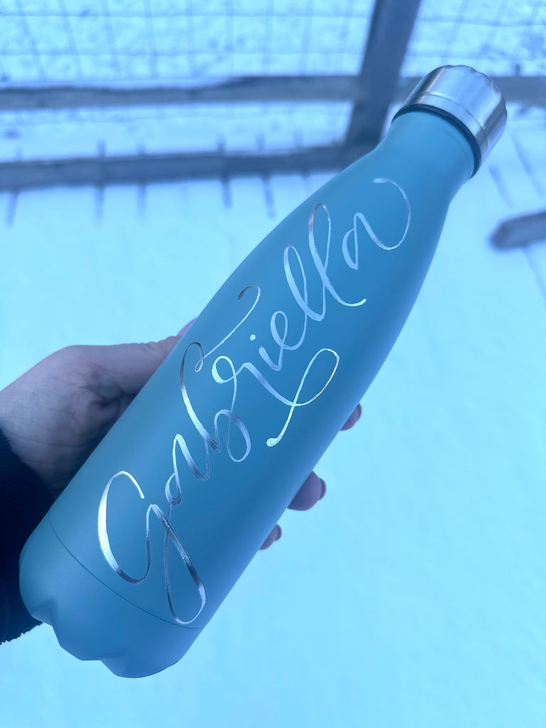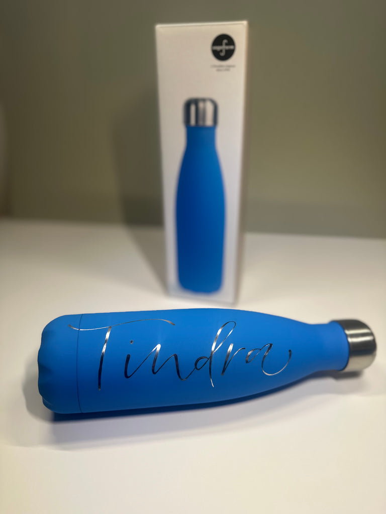 Vattenflaska i rostfritt stål med ingraverat valfritt namn eller ord.