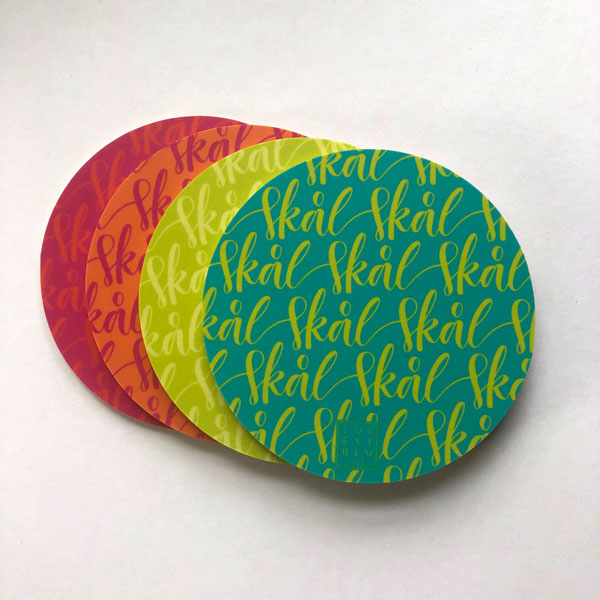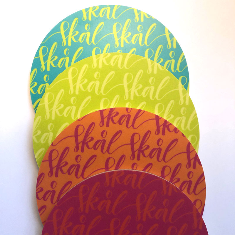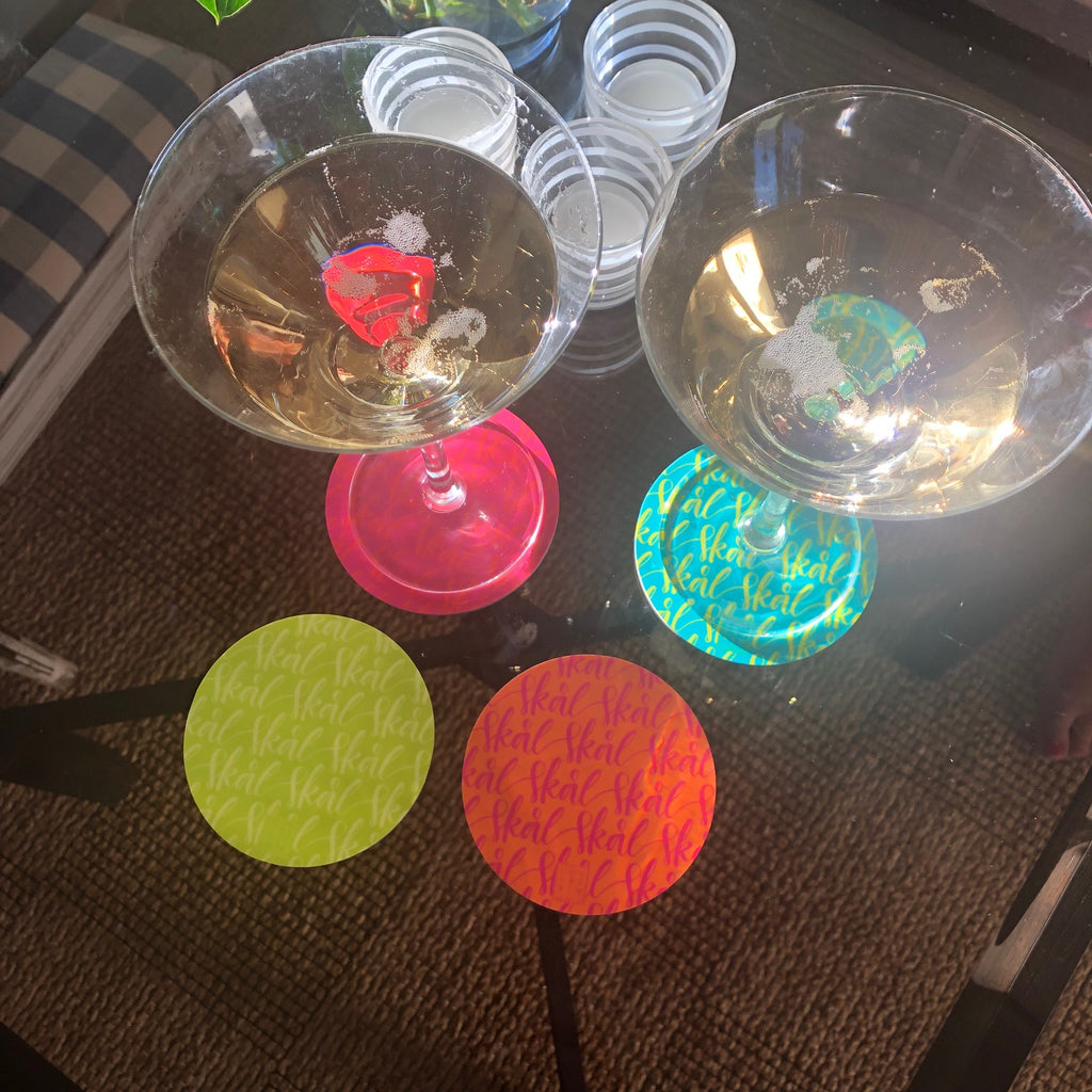 • 4 glasunderlägg i olika underbara sommarfärger som piggar upp alla drinkbord!