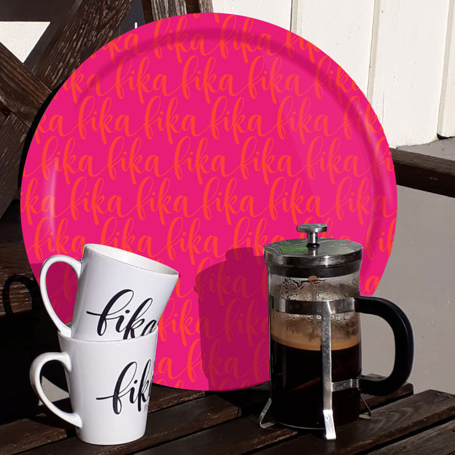 Båda mina fikabrickor är 38 cm i diameter, tillverkade i Sverige av pressad FSC®-certifierad björkfanér. Motivet skyddas av ett melaminbaserat ytskikt som gör ytan värmetålig upp till 130°.