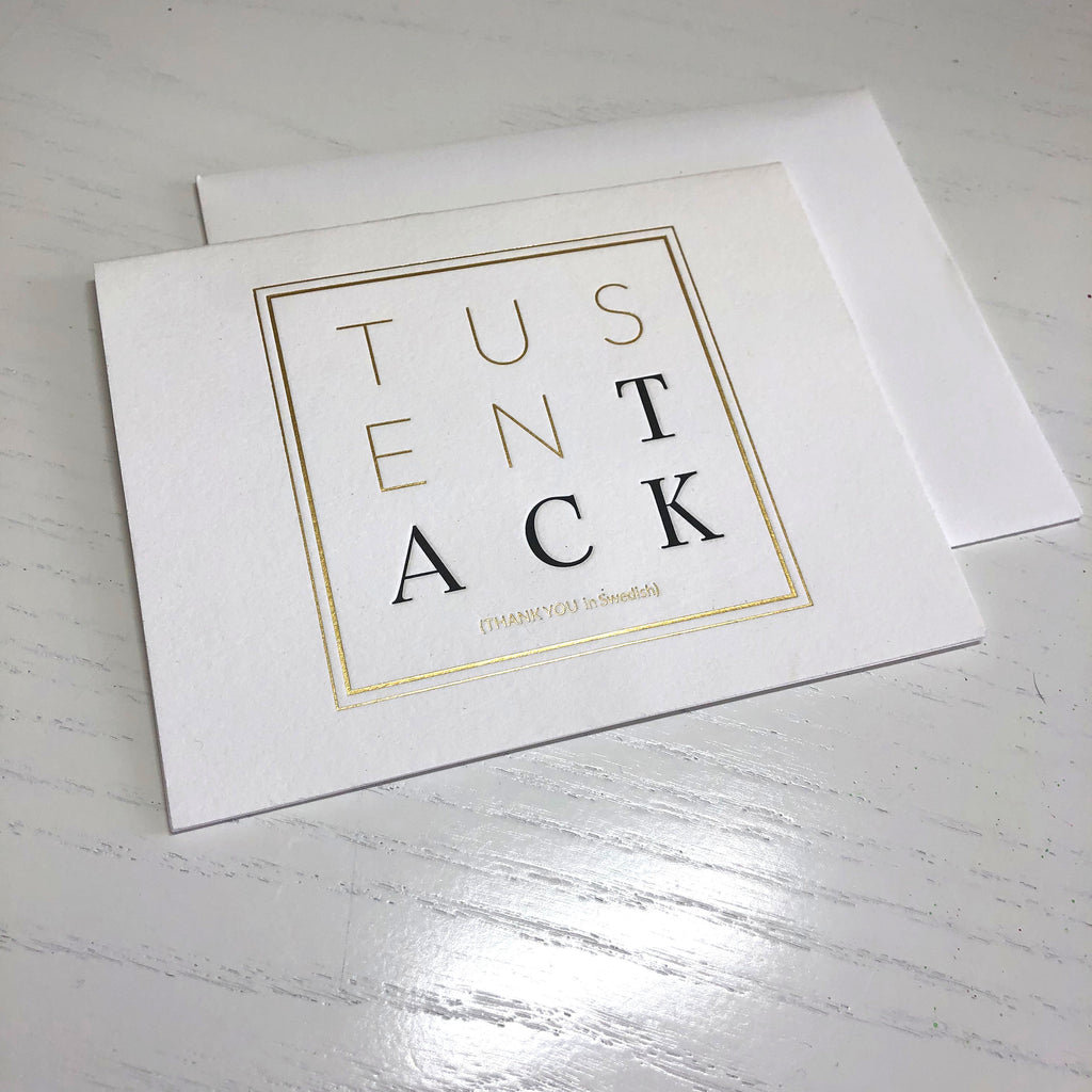 Mina gratulationskort är boktryckta, eller relieftryckta, på en original Heidelberg-press från 1970-talet. De är tryckta och guldstämplade på bomullspapper med hög kvalitet. Du kan se och känna reliefen i korten, vilket ger en känsla av lyx.