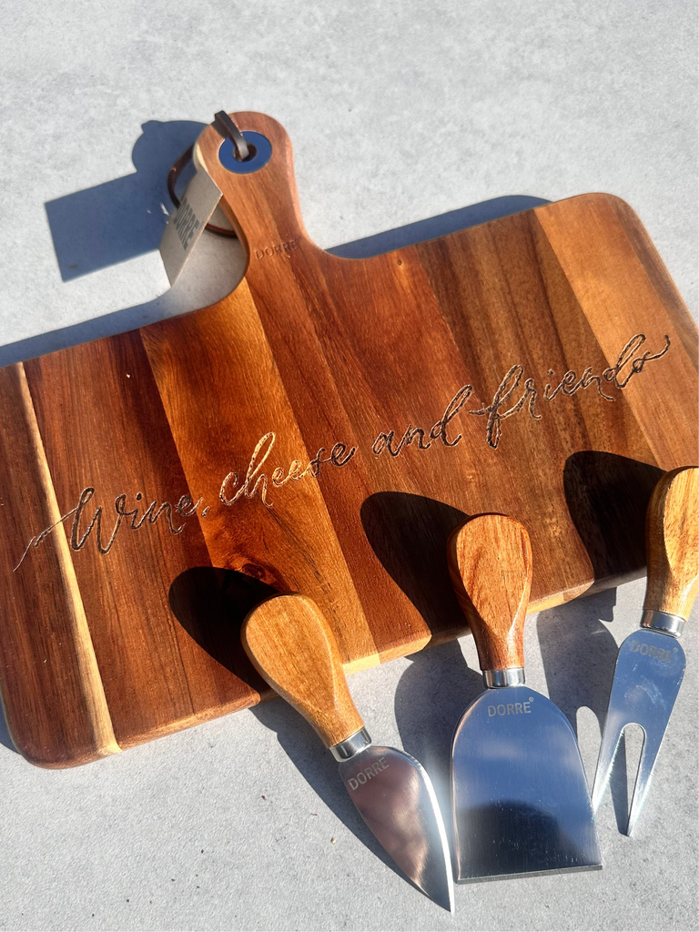 Ostbrickan kommer från Dorre Sweden och är 29 bred och 25cm djup. Den är gjord av FSC certifierad Akaciaträ. Brickan kommer tillsammans med tre ostknivar i Akaciaträ och rostfritt stål.